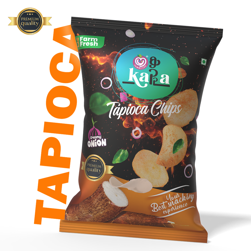 Tapioca chips, also known as cassava chips, are a popular snack in Kerala, a state in southern India. These chips are made from thinly sliced and deep-fried cassava roots, which are a staple food in many parts of India.